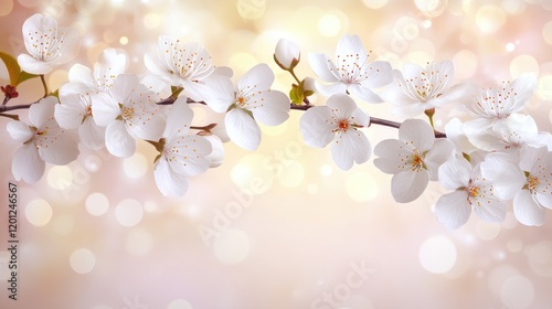 Delicate cherry blossom branch on soft bokeh background. Spring. March 8, International Women's Day. Mother's Day