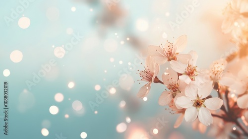 Delicate cherry blossoms burst into bloom during spring, with soft bokeh illuminating their petals, creating a serene and dreamy atmosphere