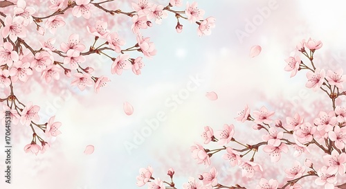 Delicate pink cherry blossoms fluttering in the gentle breeze
