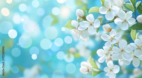 Delicate white flowers beautifully arranged with a dreamy bokeh effect, perfect for captivating spring themes