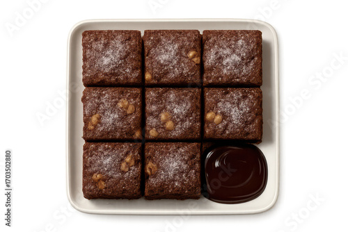 Delicious chocolate brownies with caramel chips isolated on transparent area