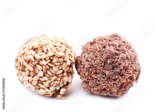 Delicious chocolate candy isolated on white