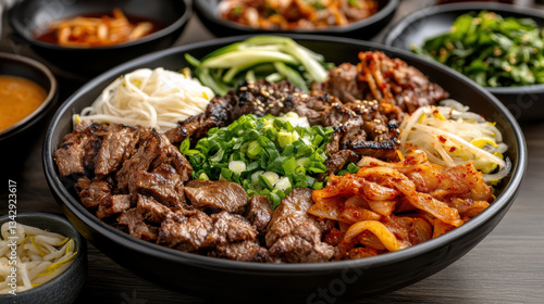 Delicious Korean BBQ feast with grilled meat and fresh vegetables