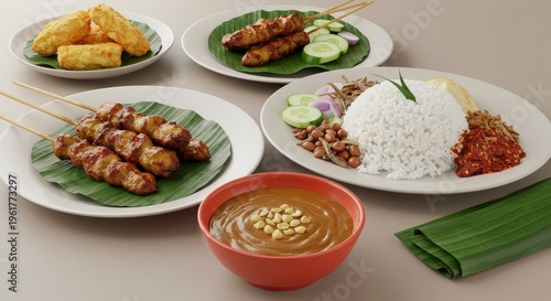 Delicious Satay and Nasi Lemak Meal Presentation