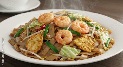 Delicious Steaming Hot Char Kway Teow with Succulent Shrimp and Savory Tofu