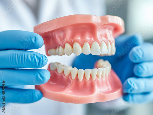 Dental Model Jaw in Dentist's Hands