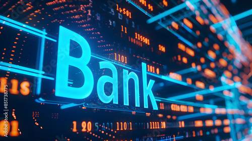 Digital banking or online banking technology, electronic commerce, word “Bank” on technology background