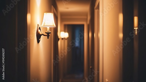Dimly Lit Hallway with Elegant Wall Fixtures