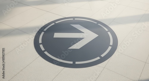 Directional Arrow Sign on Tile Flooring Indicating Guidance and Pathway for Forward Movement