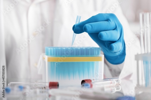 Doctors or Scientists, Scientists hold tube and vaccines for COVID-19, vaccination and laboratory experiments. Virus protection concept COVID-19,