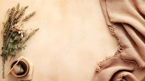 Dried Flowers Knitted Fabric Bowl Beige Background