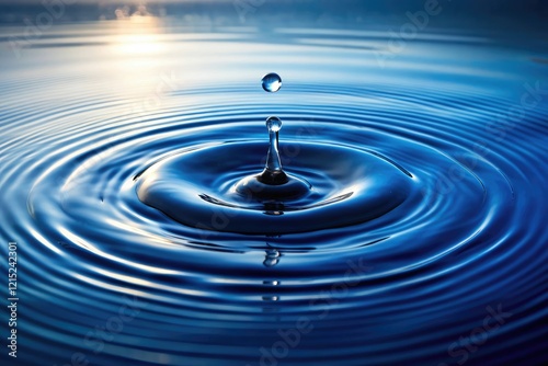 Dripping water creates a ripple effect on the surface of a calm navy-colored lake, calm water, mirror