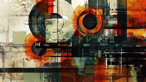 Dynamic Geometric Abstract Art with Bold Colors and Shapes