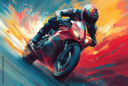 Dynamic Speed: Vibrant Art of a Motorcycle Racer in Motion