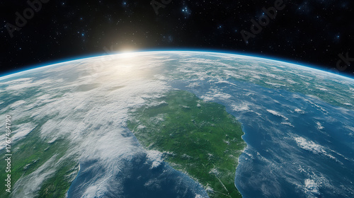 Earth from orbit with gentle atmosphere glow, showcasing serene view of planet