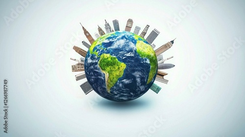 Earth globe surrounded by world cities
