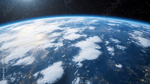 Earth View From Space Showing Atmosphere, Clouds, and City Lights
