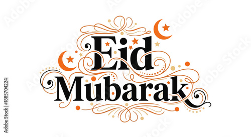 Eid Mubarak Elegant Design with Crescent and Stars