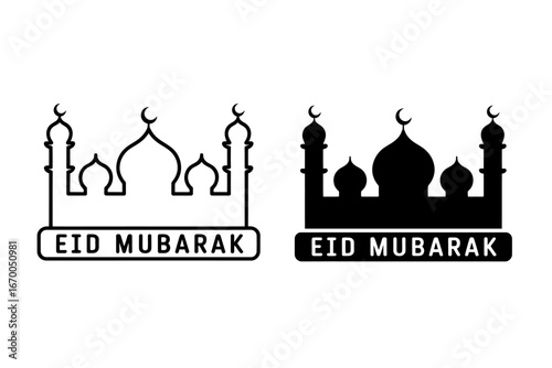 Eid Mubarak Mosque Icons Line Art and Solid Black Vector Graphics