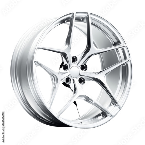 Elegant aluminum wheel showcasing dynamic starburst design on transparent presentation