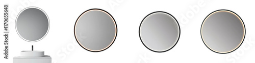 Elegant and Stylish Round Mirrors Mounted on Wall Serving as Centerpiece for Minimalist Bathroom Vanity and Interior Design