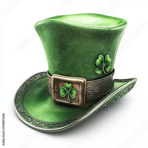 Elegant green leprechaun hat icon with a metallic buckle and a delicate clover emblem