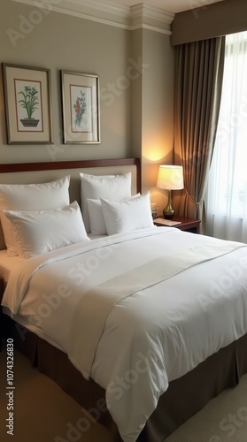 Elegant King Bed With High-Thread-Count Linens in a Cozy Hotel Room. Generative AI