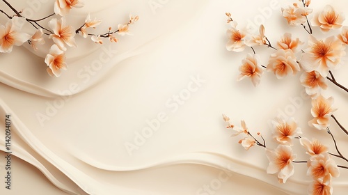 Elegant Peach Blossoms on Cream Silk Drape