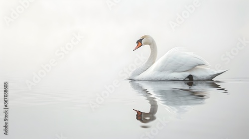Elegant Swan Gliding Across Serene Water with Graceful Reflections