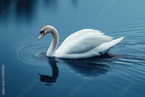 Elegant swan gliding gracefully across the tranquil water, a picture of serene beauty and nature's poise.