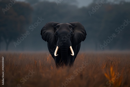 Elephant in Misty Grassland
