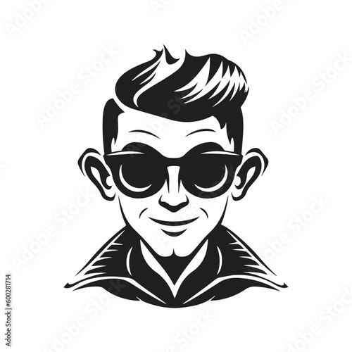 elf wearing sunglasses, vintage logo line art concept black and white color, hand drawn illustration
