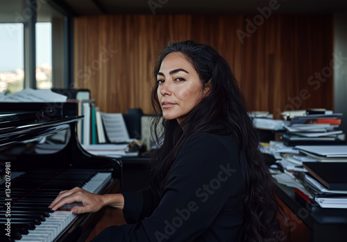 Emotional pianist immersed in music, artistic performance in an intimate setting