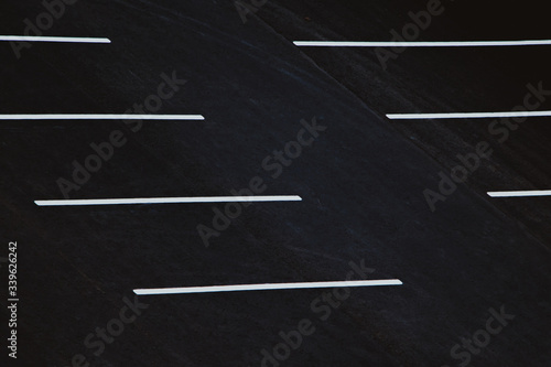 Empty parking during quarantine. White markings for cars on black asphalt.