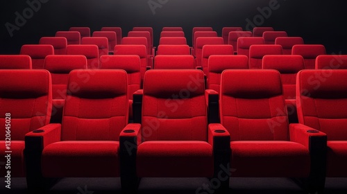 Empty Red Theater Seats in a Dark Cinema Hall Ready for Moviegoers to Enjoy a Film Experience