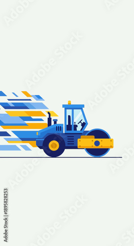 Energetic Blue Road Roller With Dynamic Motion Streaks
