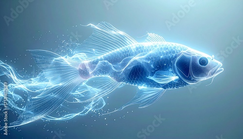 Ethereal Glowing Fish Swimming in a Dreamlike Blue Aquatic Environment