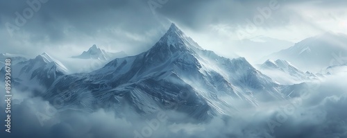 Ethereal mist shrouding a mystical mountain peak, 4K hyperrealistic photo
