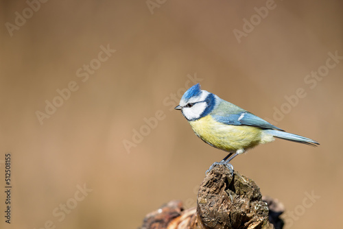 Eurasian blue tit (Cyanistes caeruleus) in spring in the nature protection area Mönchbruch near Frankfurt, Germany.