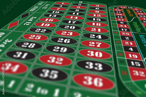 European Roulette Table perspective raster illustration, shallow DoF