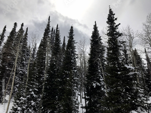 evergreen pine trees snow capped