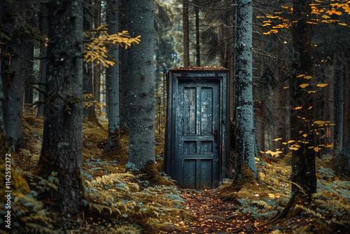 Fantastically door in wild forest leading to deep unknown
