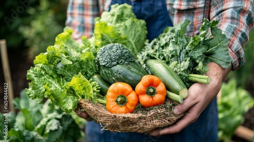 Farmer's Harvest Zucchini, Peppers and Greens in a Basket