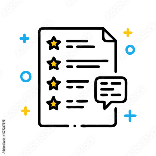 Feedback form icon with stars and comments on white background, evaluation and review concept, copy space