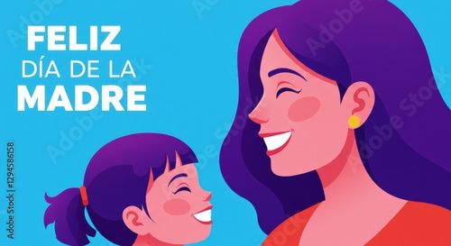 Feliz Dia de la Madre colorful illustration of happy mother and daughter