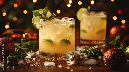 Festive Cocktails Garnished With Mint and Lime