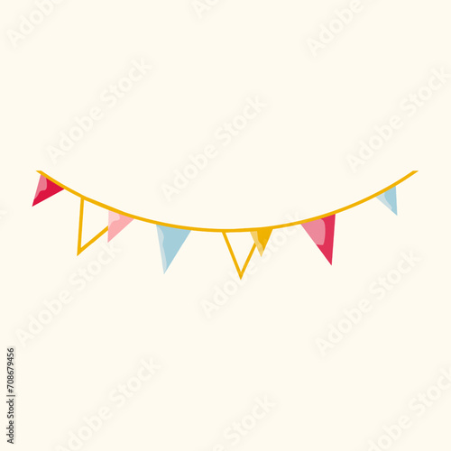 Festive flag garland vector illustration. Picture in simple flat style isolated on a light background. Carnival, birthday, circus border decoration.