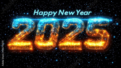 Fiery and Icy 2025 New Year's Greeting in a Starry Night Sky