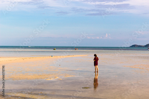 遠浅の美しい海・夕焼け・女の子