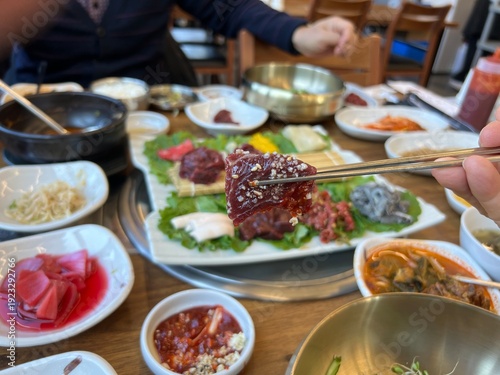 소 생고기와 여러가지 야채들